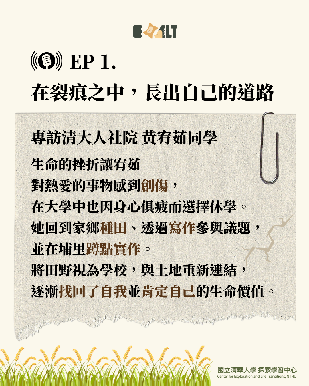 探索大學聲|EP1|在裂痕之中,長出自己的道路——專訪清大人社院 黃宥茹同學